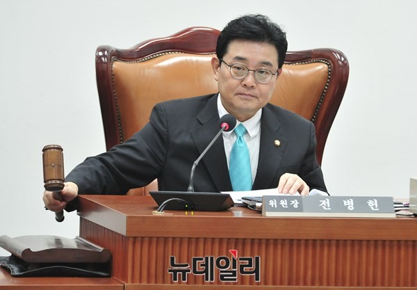 국민안전혁신 특별위원회 전병헌 위원장이 28일 오전 서울 여의도 국회에서 열린 전체회의에서 의사봉을 두드리고 있다.