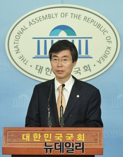새정치민주연합 조경태 의원이 29일 오전 서울 여의도 국회 정론관에서 [국회의원 정수축소 및 비례대표제 폐지] 의견을 밝히고 있다.