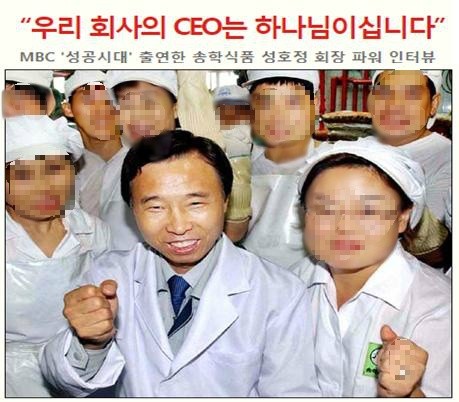 또 성 회장은 당시 송학식품의 번성에 대해 "이 모든 것이 하나님의 은혜라고 생각합니다. 사람들은 저를 회장이라고 부르지만 저는 직원들을 동업자이며, 도움을 주는 사람들이라고 여기기에 항상 감사하게 생각합니다. 저는 그저 관리인일 뿐입니다"라며 "우리 회사의 진정한 ceo는 하나님이십니다"라고 겸손한 발언을 했다.