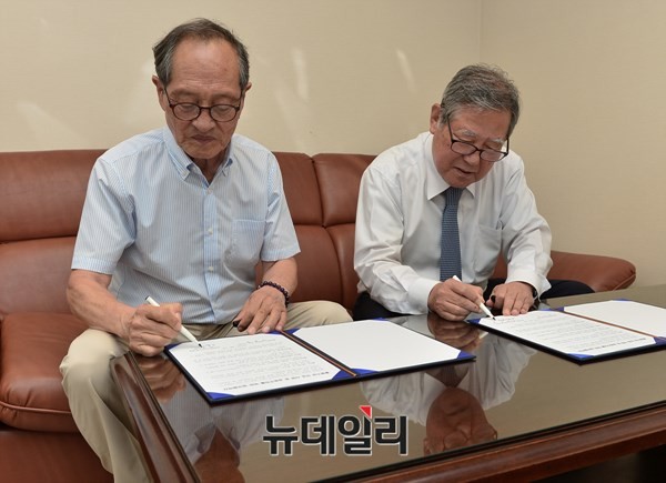 뉴데일리미디어그룹 인보길 대표이사는 4일 오후 서울 중구 통일과나눔재단 사무실에서 통일과나눔 재단 안병훈 이사장과 MOU를 체결했다. 인 회장은 "자유통일은 뉴데일리의 사시"라며 "뉴데일리 임직원들부터 기금에 동참하고, 적극 홍보에 나서기로 했다"고 밝혔다. 이날 뉴데일리 임원 10여명이 기금에 참여했다.