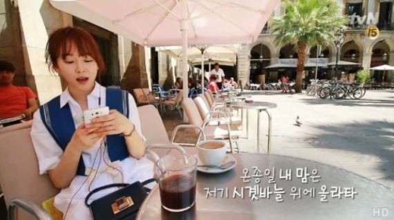 당시 서현진은 "온종일 내 맘은 저기 시곗바늘 위에 올라타.."라며 노상까페에 앉아 콧노래를 부르고 있다. 사진 속 서현진의 캐주얼한 차림과 청초한 화장이 유독 눈에 들어온다.