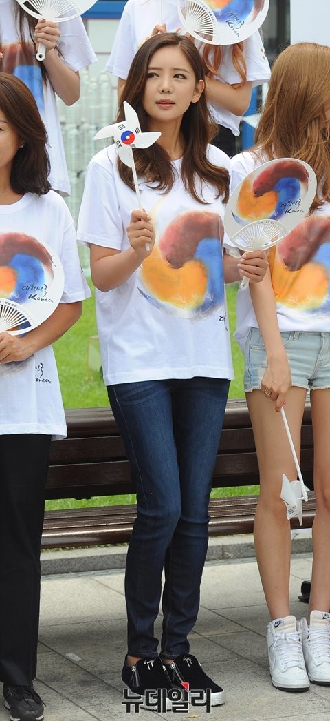 11일 오전 서울 종로구 대한민국역사박물관 앞 잔디광장에서 열린 광복 70주년 맞이 ‘대중 문화 예술인과 함께 하는 나라사랑 캠페인’에 참석한 인기 연예인 이태임, 스텔라, 남보라, 허이재 등이 참석해 포토타임을 진행했다.