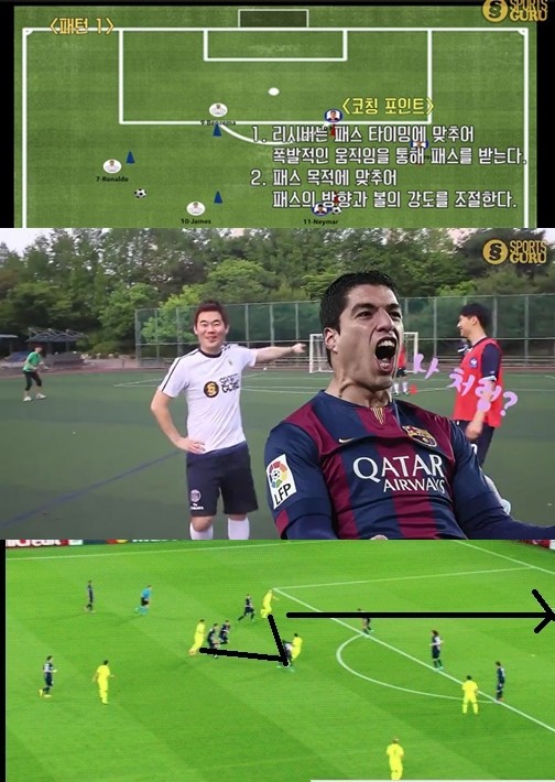 유튜브 '스포츠구루 풋볼레시피 시즌2 제1편'에서는 바르셀로나 전용 슈팅 패턴을 분석했다. 지그재그로 패스를 이어가며 골문으로 그대로 잇는 형식이다.