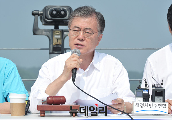 문재인 새정치민주연합 대표가 12일 오전 경기 파주시 임진각 전망대에서 열린 현장 최고위에서 모두발언을 하고 있다.