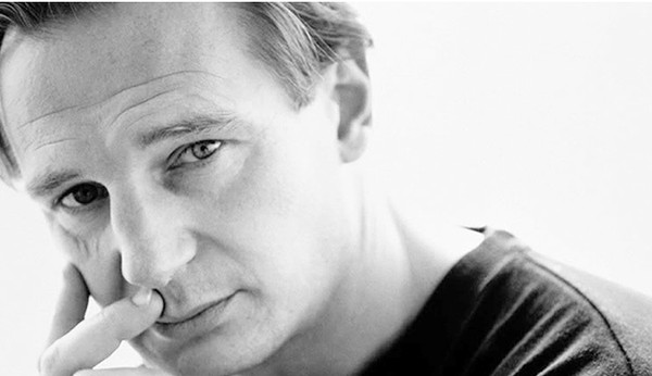 공개된 사진 속 리암니슨은 손가락으로 입언저리와 볼을 잡고 카메라를 지그시 바라보고 있다.