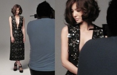 당시 장서희는 짙은 스모키메이크업을 하고 가슴은 물론 복부까지 풀어 헤쳐진 슬리브리스 원피스를 입고 카메라를 바라보고 있다.