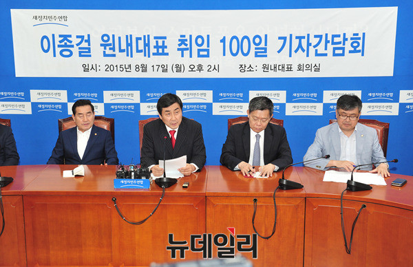 새정치민주연합 이종걸 원내대표가 17일 오후 서울 여의도 국회에서 [취임 100일 기자간담회]를 갖고 있다.
