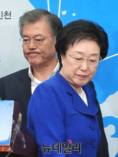 불법 정치자금 수수 혐의로 징역 2년의 실형이 최종 확정된 한명숙 새정치민주연합 의원이 20일 오후 서울 여의도 국회 당대표실에서 억울함을 주장하는 기자회견을 갖고 단상에서 내려오고 있다.