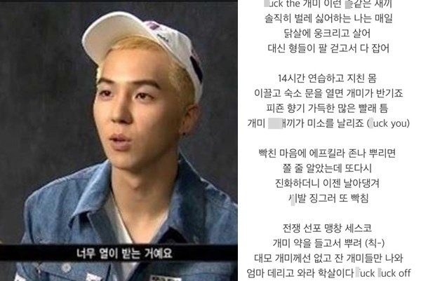'쇼미더머니4' 송민호가 화제인 가운데 그의 재미난 곡이 눈길을 모은다.송민호는 과거 개미와 관련된 랩을 작사했고 팬들의 폭소를 자아냈다고.내용은 "14시간 연습하고 지친 몸 이끌고 숙소 문을 열면 개미가 반기죠. 피죤 향기 가득한 많은 빨래 틈 개미 X새끼가 미소를 날리죠", "진화하더니 이젠 날아댕겨 x발 징그러 또 빡침", "대모 개미께선 없고 잔 개미들만 나와, 엄마 데리고 와라 학살이다" 등 개미에 대한 혐오감을 랩으로 표현, 이목을 집중시켰다.이를 접한 네티즌들은 "송민호 랩 웃기네" "송민호 개미 디스하는거야 뭐야" "송민호 랩 신기"라는 반응을 보였다.