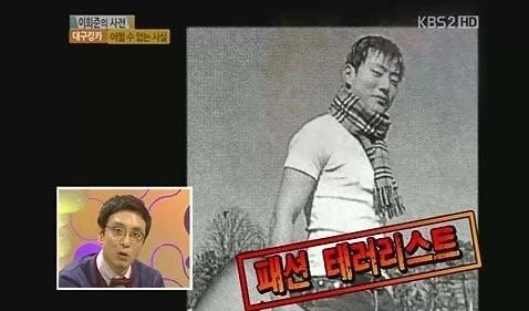 배우 이희준이 모델 이혜정과의 열애설로 화제의 인물로 떠올랐다. 이 가운데 이희준의 과거 패션 이 덩달아 눈길을 끌고 있다.이희준은 지난 2012년 방송된 KBS 예능프로그램 '승승장구'에 출연했다.이날 이희준은 "대학교 1학년 때 패션 잡지에 캠퍼스 킹카로 사진이 실린 적이 있다. 좀 특이하게 하고 다녔다"고 말했다. 이에 MC 김승우는 "사진을 입수했다"며 당시 찍은 사진을 공개했다.공개된 사진 속 이희준은 머리에 무스를 잔뜩 바르고 한 손에 기타를 든채 포즈를 잡고 있다. 그러나 반팔과 정반대로 체크무늬 목도리로 언발란스 패션을 선보여 MC들을 경악하게 했다.김승우는 "저건 패션 테러리스트"라고 말했고, 이기광은 "여름인지 겨울인지 정확히 구분이 안 간다"고 말해 폭소케 했다.이를 접한 네티즌들은 "이희준 모델 남친인데..패션이..저게뭐지" "이희준 패션 놀랍네" "모델 이혜정 남친 이희준 패션 테러리스트였다니 웃기다"라는 반응을 보였다.한편 이희준과 이혜정의 열애설에 대해 이희준 소속사 측은 "확인 결과 두 사람이 좋은 만남을 갖고 있다"고 말하며 공식적으로 열애를 인정했다.