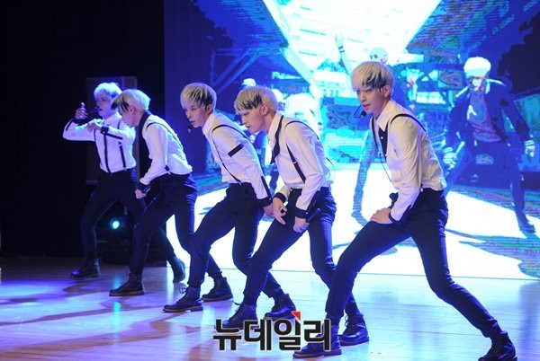 이날 미니앨범 쇼케이스에는 5인조로 재정비한 선혁, 영조, 정하, 윤후, 성호가 참석해 앨범 타이틀곡 'STALKER(스토커)'를 열창했다.