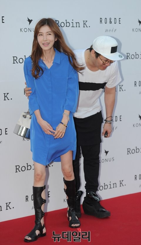 미국 로빈케이 인터내셔널 [로앤디누아 & 코너스] 론칭 행사가 27일 오후 서울 강남구 청담 드레스가든에서 열렸다. 이날 행사에 윤민수-김민지 부부가 참석해 포토타임을 갖고 있다.