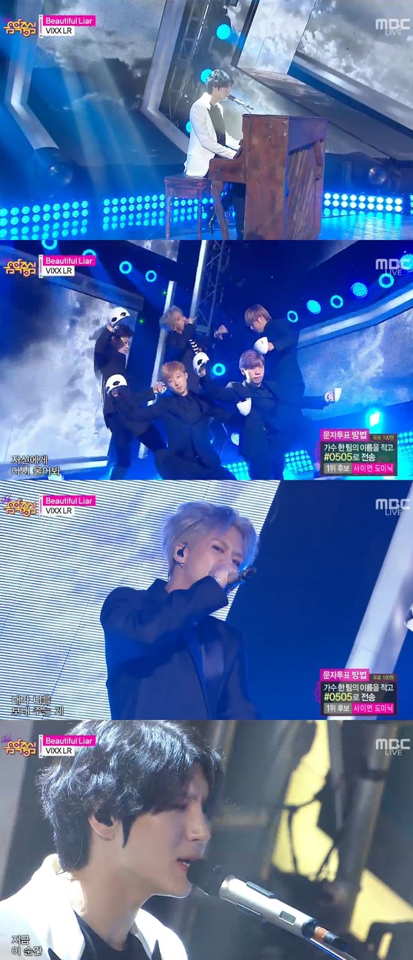 ‘음악중심’ 그룹 빅스LR이 애절한 보이스와 거친 상남자의 매력을 조화롭게 선보였다.29일 오후 민호 예리 엔이 진행한 MBC ‘쇼! 음악중심’(이하 ‘음악중심’)에서는 빅스LR이 ‘Beautiful Liar’ 무대를 꾸몄다.이날 빅스LR 멤버 레오는 피아노를 연주하며 애절한 보이스를 뽐냈다. 이어 라비가 등장, 강렬한 래핑으로 팬들의 함성을 자아냈다. 두 사람의 조화로운 무대는 시청자들의 심금을 울렸다.빅스LR의 'Beautiful Liar'는 멤버 라비의 자작곡으로, 묵직한 힙합비트 속에 서정적인 피아노 테마와 스트링이 락 요소와 함께 어우러진 노래다.한편 이날 ‘음악중심’에서는 소녀시대 SG워너비 현아 B1A4 빅스LR 여자친구 주니엘 앤씨아 투아이즈 김소정 전설 놉케이 비트윈 워너비 연분홍 배수정 아미 에이프릴 마이비 등이 출연했다.