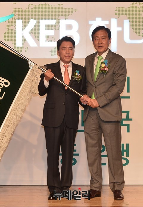 외환은행과 하나은행이 통합한 [KEB하나은행]이 1일 오전 서울 을지로 본사(옛 외환은행 본사)에서 현판식과 은행장 취임식을 가지고 새롭게 출발했다. 초대 KEB하나은행장은 함영주 행장이 맡게 됐다.