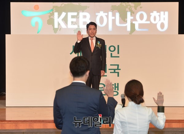 외환은행과 하나은행이 통합한 [KEB하나은행]이 1일 오전 서울 을지로 본사(옛 외환은행 본사)에서 현판식과 은행장 취임식을 가지고 새롭게 출발했다. 초대 KEB하나은행장은 함영주 행장이 맡게 됐다.