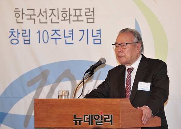 한국선진화포럼이 창립 10주년 기념 세미나 [故 지암 선생의 비전과 유산-대한민국 성공신화의 세대 간 공유]가 1일 오후 서울 소공동 롯데호텔에서 개최됐다.이날 행사는 손병두 한국선진화포럼 회장의 개회사를 시작으로 제1부 세미나에서는 윤창현 서울시립대 교수가 좌장을 맡았고 안병직 서울대 명예교수가 '경제사적 시각에서 본 한국의 경제발전'을, 좌승희 영남대 박정희새 마을대학원 석좌교수가 '새마을 운동의 의미와 평가'를, 한승희 KDI 국제정책대학원 초빙교수가 '경제개발 5개년 계획의 의미와 평가'를 주제로 각각 발표했다.제2부 '선진화의 밤'에서는 박근혜 대통령의 영상메시지를 통한 격려사와 이홍구 전 국무총리, 이어령 초대 문화부장관, 정갑영 연세대 총장의 축사가 이어졌고 김윤형 한국선진화포럼 상임이사 주도로 한국선진화포럼의 10년 발자취를 돌아봤다.