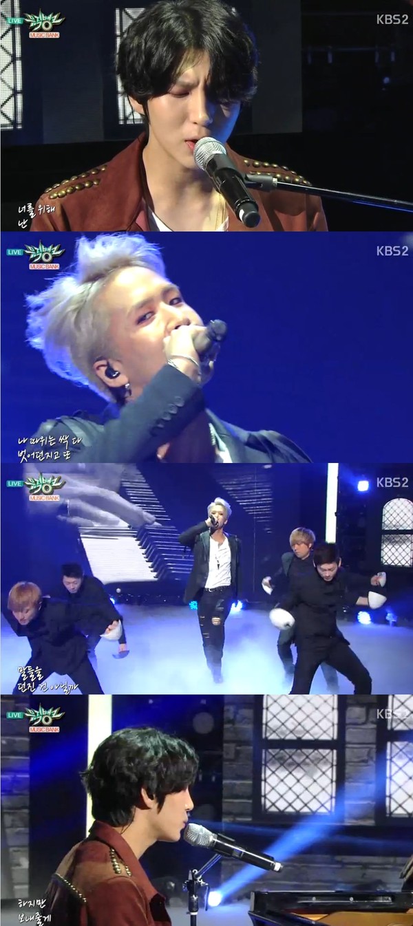 ‘뮤직뱅크’ 그룹 빅스LR이 애절함 가득한 무대로 여심을 흔들었다.4일 오후 박보검과 아이린이 진행한 KBS2 생방송 ‘뮤직뱅크’는 빅스LR이 ‘Beautiful Liar’을 열창했다.이날 빅스LR은 굿바이무대로 시청자들을 찾았다. 멤버 레오의 구슬픈 보이스와 피아노 연주, 그리고 라비의 강렬한 래핑은 팬들의 아쉬움을 더했다.빅스LR의 'Beautiful Liar'는 멤버 라비의 자작곡으로, 묵직한 힙합비트 속에 서정적인 피아노 테마와 스트링이 락 요소와 함께 어우러진 노래다.한편 이날 ‘뮤직뱅크’에는 소녀시대, 현아, 빅스LR, 주니엘, 여자친구, 투아이즈(2EYES), 에이프릴, 전설, 비트윈, 마이비, JJCC, 벤, 놉케이, 연분홍, 빅스타, 소나무, 유니콘, 퍼펄즈, 아미 등이 출연했다.