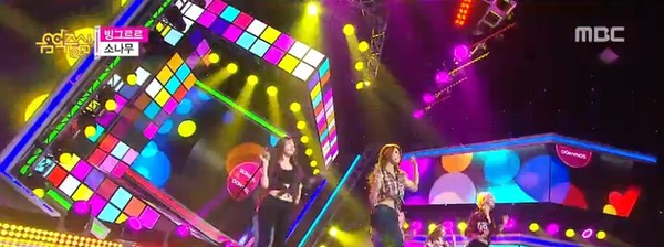5일 오후 방송된 MBC '쇼 음악중심'에서는 걸그룹 소나무가 신곡 '빙그르르'로 신나는 분위기를 만들었다.