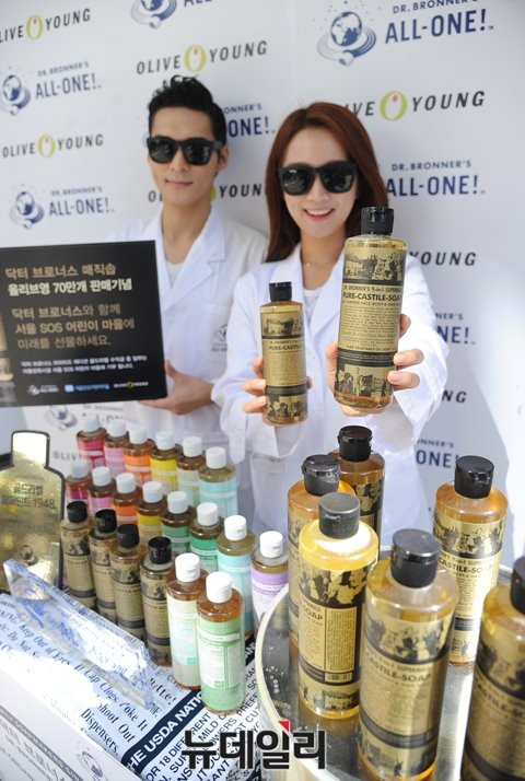 닥터 브로너스 '골드라벨 페퍼민트 1948' 한정판 출시 행사가 8일 오전 서울 중구 명동 올리브영 매장에서 열렸다.