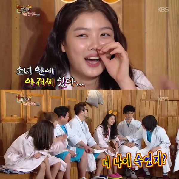 '연애세포2'에 출연하는 배우 김유정이 화제인 가운데 과거 김유정의 방송에서 밝힌 남다른 입맛이 새삼 재조명되고 있다.김유정은 과거 방송된 KBS 2TV '해피투게더3'(이하 '해투')에 김태우, 김준현, 홍진영, 미쓰에이 페이와 함께 출연했다.이날 김유정은 나이와 이미지에 맞지 않는 아저씨 식성 및 취향으로 MC들에게 놀림을 받았다. 하지만 김유정은 추천 음식으로 간, 허파, 간장에 졸인 돼지 껍질을 공개하며 아저씨 같은 식성을 공개해 웃음을 자아냈다.이와 함께 김유정은 곧바로 간, 허파, 돼지 껍질을 맛있게 먹었다. 김유정은 허파를 소금에 찍어 먹지 않는 이유를 묻자 "소금 먹으면 허파 맛이 안난다"고 답해 감탄을 자아냈다.이를 접한 네티즌들은 "'연애세포2' 김유정 저런 입맛이라니 반전이네" "'연애세포2' 김유정 완전 깬다 신기해" "'연애세포2' 김유정 매력있네"라는 반응을 보였다.한편 김유정은 8일 오후 서울 강남구 임피리얼 팰리스 호텔에서 진행된 웹드라마 ‘연애세포 시즌2’(이하 연애세포2) 제작발표회에 참석했다.