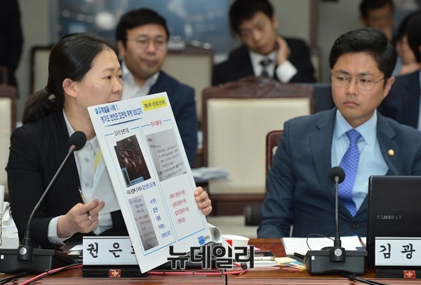 국방위원회 2015 국정감사가 10일 오전 국방부에서 열린 가운데 새정치민주연합 권은희 의원이 중국군 유해에 관해 질문하고 있다.