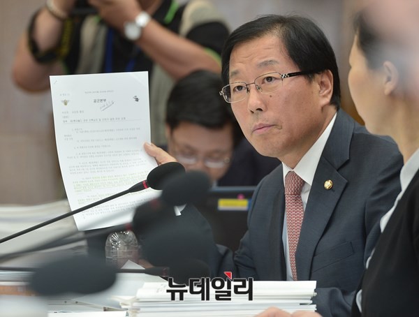 국방위원회 2015 국정감사가 10일 오전 국방부에서 열린 가운데 새정치민주연합 윤후덕 의원이 질의하고 있다.