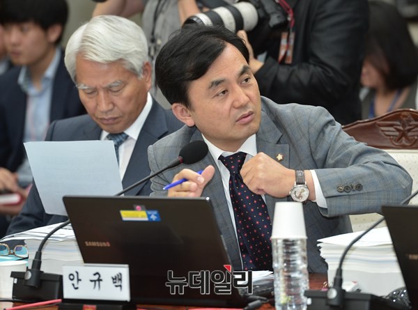 국방위원회 2015 국정감사가 10일 오전 국방부에서 열린 가운데 새정치민주연합 안규백 의원이 질의하고 있다.