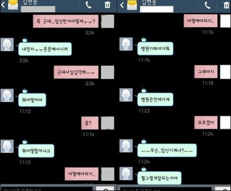 김현중이 전 여자친구가 9월초 출산했지만 친자 확인을 거부 중인 것으로 알려졌다. 이런 가운데 김현중이 전 여자친구와 주고받은 문자의 일부가 재조명되고 있다.최근 한 온라인커뮤니티는 김현중과 전 여자친구의 문자 내용을 캡처한 사진을 올렸다.김현중은 공개된 대화 속에서 여자친구의 임신했다는 사실을 보고,'뭐 어떡할거냐고,병원 가봐야지 뭐'등의 다소 퉁명스러운 반응을 보였다. 또 마지막에는 '무슨 임신기계냐?'며 여자친구를 나무라고 있다.이를 접한 네티즌들은 "김현중 전 여친과 이런일이?" "김현중 전 여친 어떻게 되는거야..." "김현중 전 여친 어디까지 갈까?"등의 반응을 남겼다.한편,김현중 전 여친 A씨의 변호인은 "A씨가 9월초 출산을 하고 산후 조리에 전념하고 있다"고 말했다. 또,"친자 확인은 아빠 쪽의 승인을 얻어야 할 수 있는데,김현중 측이 거부하고 있으니 친자 확인 소송을 제기할 것"이라고 밝혔다.
