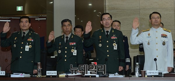 이날 국정감사는 임종인 청와대 특보의 증인채택을 둔 논의로 약 30분 지연됐다. 최윤희 합참의장의 선서로 시작된 국감은 정경두 전략기획본부장의 업무보고까지 공개됐다.