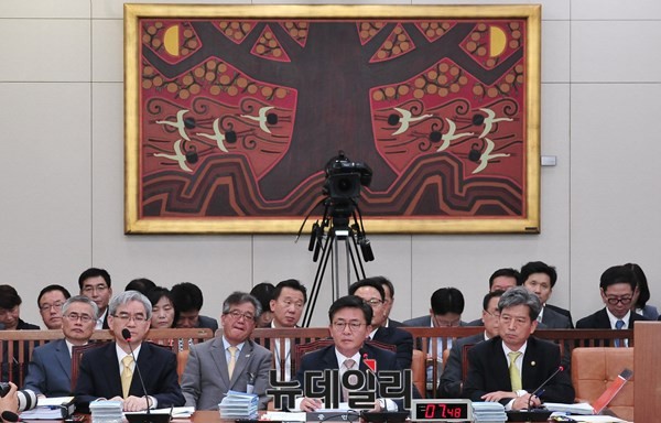 홍용표 통일부 장관이 11일 오전 서울 여의도 국회에서 열린 외교통상위원회 통일부 등에 대한 국정감사에서 의원들의 질문에 답변하고 있다.