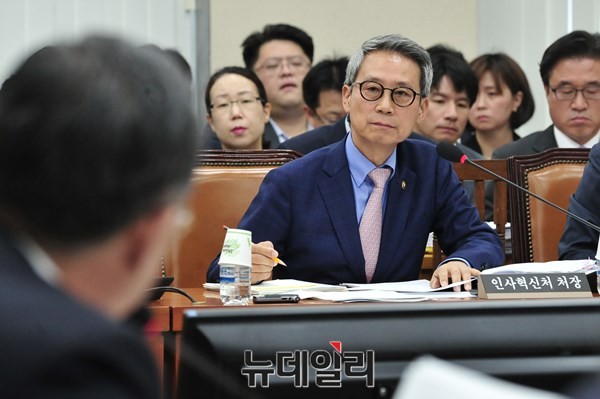 이근면 인사혁신처장이 11일 오전 서울 여의도 국회에서 열린 안전행정위원회 중앙선거관리위원회, 인사혁신처 등에 대한 국정감사에서 의원들의 질문에 답하고 있다.