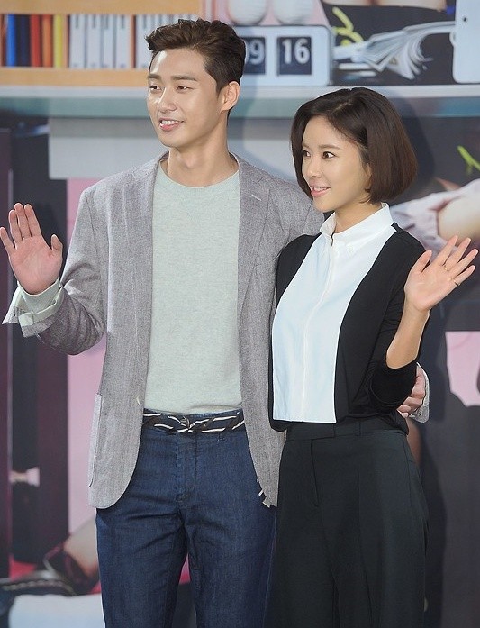 배우 박서준, 황정음의 제작발표회 사진이 화제다.