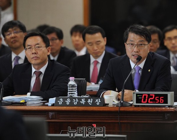 진웅섭 금융감독원장이 15일 오전 서울 여의도 금융감독원에서 열린 국회 정무위원회의 금융감독원에 대한 국정감사에 출석해 의원들의 질문에 답변을 하고 있다.