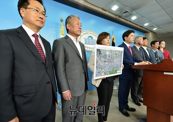 지상욱 새누리당 서울특별시당 중구 당협위원장이 16일 오후 국회 정론관에서 기자회견을 갖고, 서울시가 진행하고 있는 서울역 고가공업사업과 관련해 무기한 저지 투쟁을 시작한다고 밝혔다.