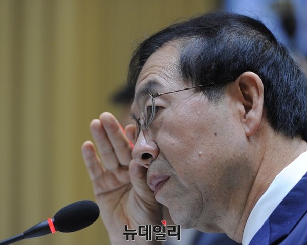 국회 안전행정위원회의 서울특별시 국정감사가 17일 서울시청에서 열린 가운데, 박원순 서울시장이 질의를 듣고 있다.