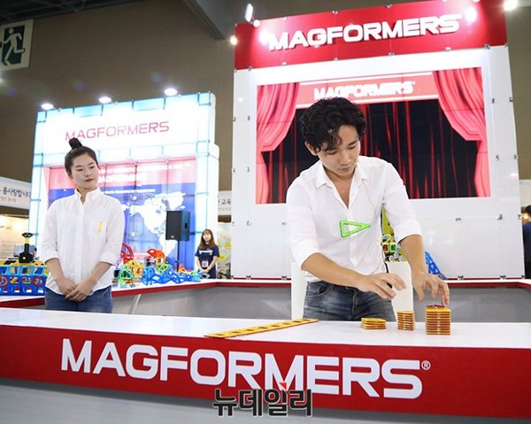 - ▲ 한국짐보리가 17일 일산 킨텍스에서 진행되는 ‘제4회 교육기부 행복박람회’에서 신제품 '맥포머스 슈퍼 스팀'으로 만든 제품을 선보이고 있다. ⓒ뉴데일리 정재훈 기자