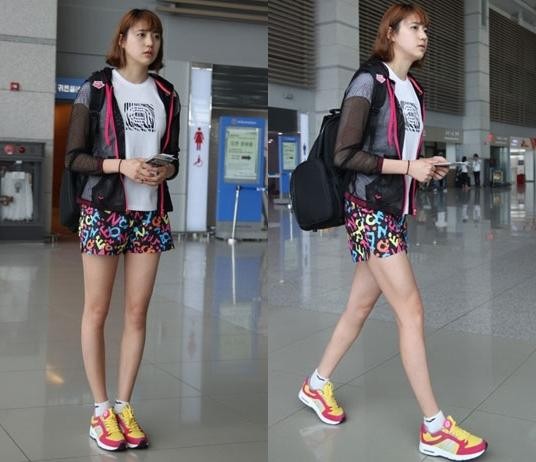 특히 정다래는 흰 티셔츠 위에 걸친 블랙 매쉬 재킷과 비비드컬러의 운동화로 스포티한 공항패션을 완성했다.