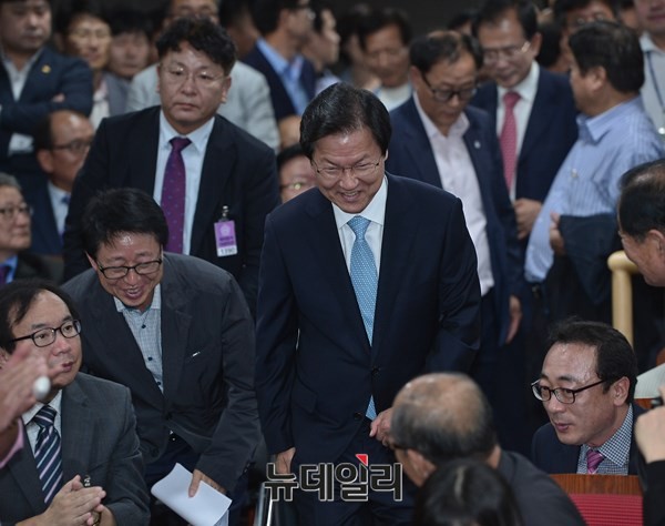 [포토] 기자회견장 박수받으며 입장하는 천정배