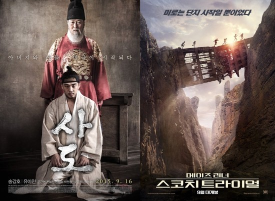 '사도'와 '메이즈러너:스코치트라이얼(이하 메이즈러너2)'가 일일 박스오피스에서 각각 1, 2위를 달리고 있는 것.