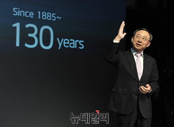 황창규 KT 회장이 23일 오전 서울 종로구 KT 광화문 올레스퀘어에서 대한민국 통신 130년을 맞이해 열린 [KT 미래전략 발표 기자간담회]에서 미래전략을 발표하고 있다.