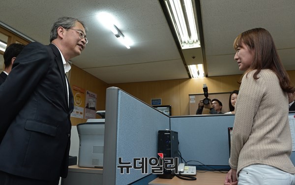 임종룡 금융위원장이 23일 오후 서울 종로구 미소금융중앙재단 현장을 방문해 서민금융 지원 강화방안에 따라 추진성과를 점검하고 애로사항을 청취했다.