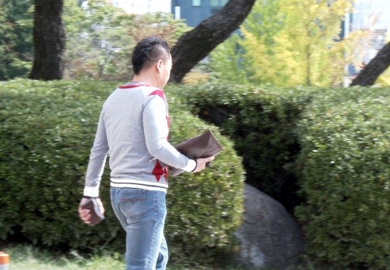 이날 백재현은 모히칸 헤어스타일과 체크 무늬 스웨터를 입은 캐주얼 차림으로 법정에 들어섰다.