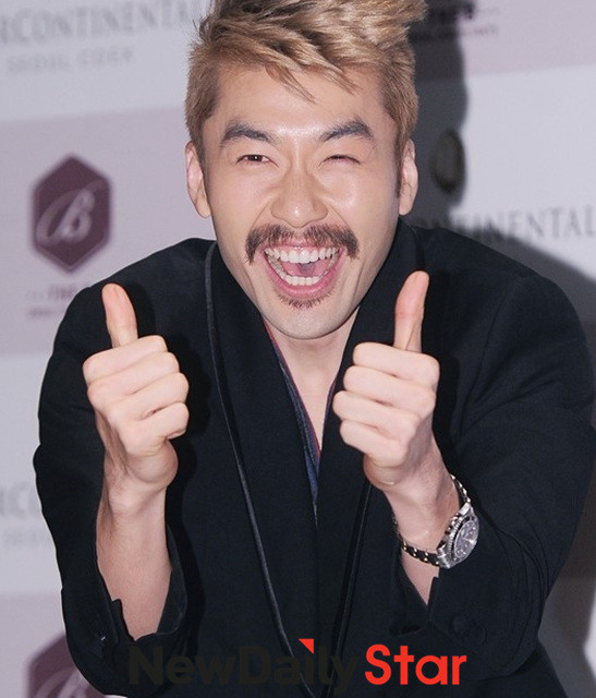 사진 속 노홍철은 깔끔한 벨벳소재의 정장을 입고 금발로 탈색한 머리를 한 채 특유의 모션을 선보이고 있다.