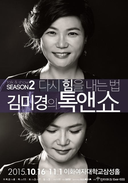 '김미경의 톡앤쇼-다시 힘을 내는 법'은 오는 10월 16일부터 11월 1일까지 이화여자대학교 삼성홀에서 공연된다.