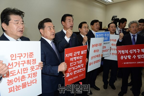농어촌 지방주권살리기 의원들의 모임 소속 의원들이 12일 국회의장실앞에서는 피켓을 들고 국회의장 면담을 요구하고 있다.