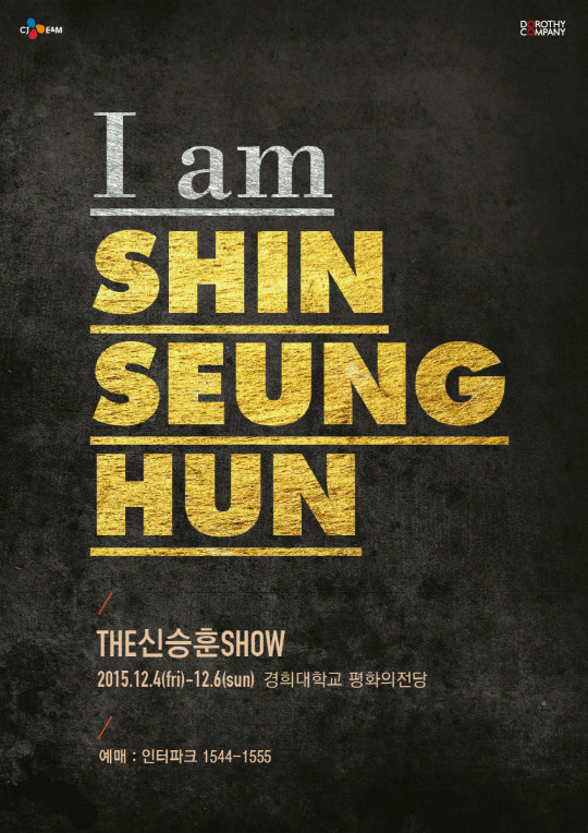 오는 10월 말, 9년 만에 정규 11집으로 돌아오는 '발라드의 황제' 신승훈이 12월 4일부터 6일까지 경희대학교 평화의 전당에서 'THE 신승훈 SHOW - I AM SHIN SEUNG HUN' 콘서트를 개최한다.