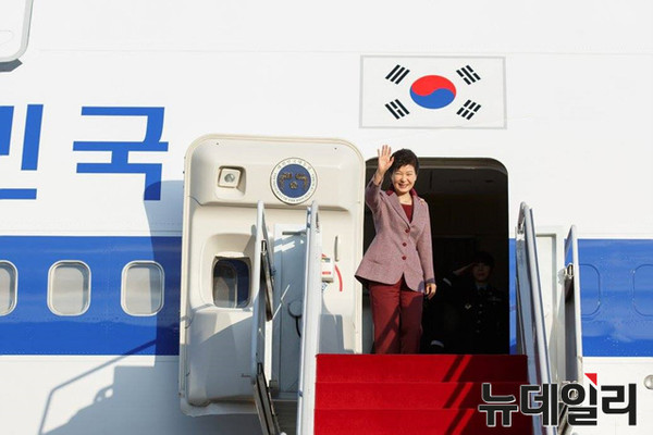 버락 오바마 미국 대통령과의 정상회담을 위해 방미(訪美) 길에 오른 박근혜 대통령은 13일(현지시간) 오후 워싱턴 D.C 동쪽에 위치한 앤드류스 공군기지에 도착했다.