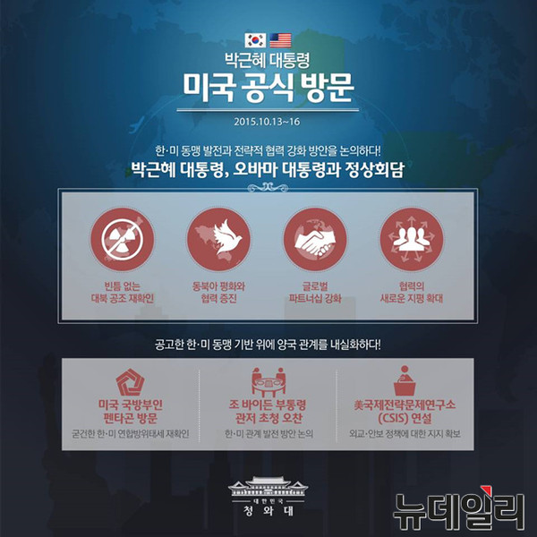 16일에는 방미 일정의 핵심이라 할 수 있는 오바마 대통령과의 정상회담이 열린다.