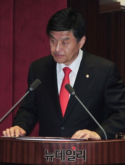 새누리당 심윤조 의원이 14일 오전 서울 여의도 국회본회장에서 열린 외교·통일·안보 분야 대정부질문에서 황교안 국무총리에게 질의하고 있다.