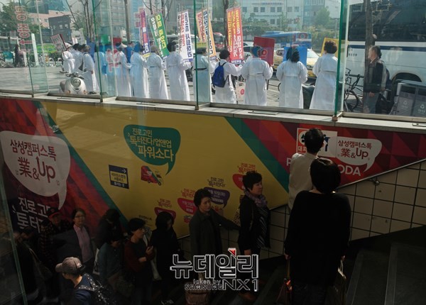 상복(喪服)을 입은 단원들은 병원과 신촌역을 오가며 가두 행진을 이어갔다. 가두 행진에서 이들은 세브란스병원 관계자와 연세대 학생들에게 병역 의혹과 관련한 진상규명에 나서줄 것을 촉구했다.